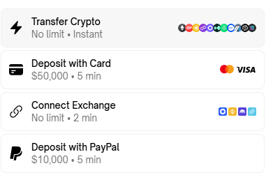 Recommendation: Deposit USDC for minimal friction. Depositing other tokens ultimately converts to USDC with some slippage.
