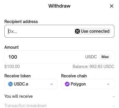 For USDC withdrawals to wallet, I recommend Polygon chain USDC.e for zero-loss transfers: